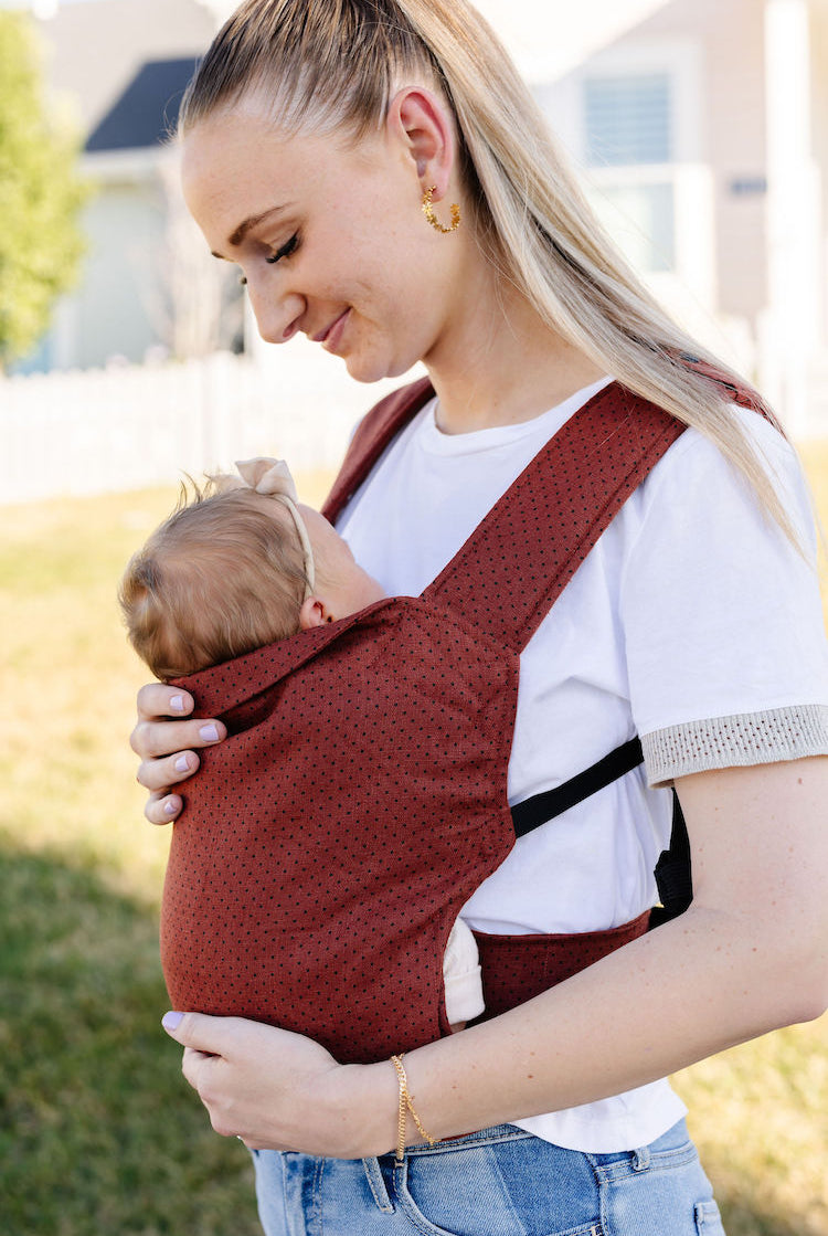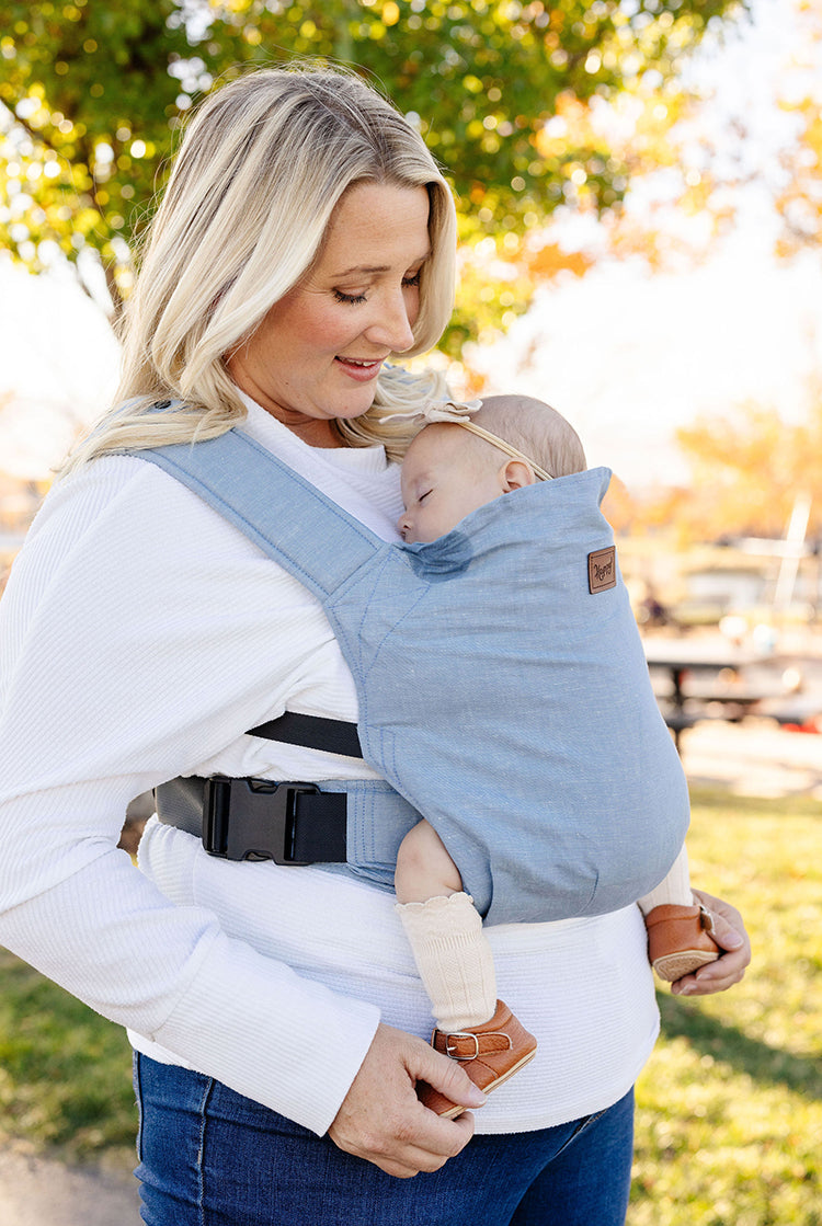 A fan favorite for a reason! This is the carrier started it all. Slim, but supportive padding with curved straps form an 'H' style attachment. An apron waist evenly distributes weight and allows caregivers to easily sit without any bukly waistband to dig in or bend and crease.
